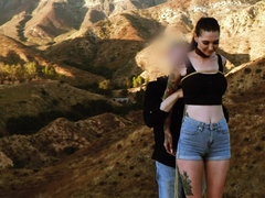 Deepthroating light wand gagging on cock under the stars