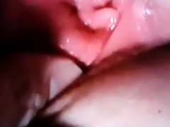 Sweet teenie is opening up soft honey pot in closeup and cum
