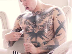 NASTYDADDY Tattooed Jock Masturbates Dick And Uses Dildo